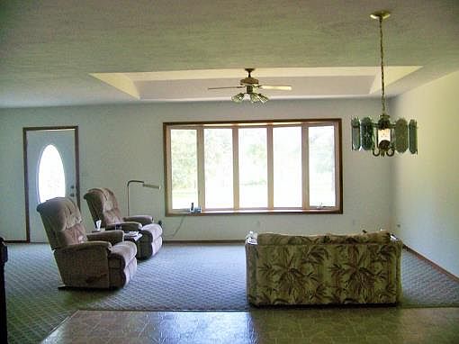 4 bedroom 3 bath home, French doors going out onto deck from master, Large living room with bay window, nice kitchen cabinets with movable island. All appliances. full basement with large family room with French doors going to patio. Situated on 8 acres m/l