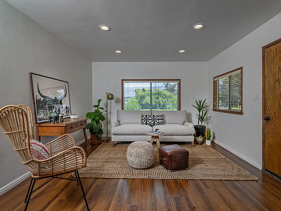 Located on a Spacious Lot in a Beautiful Ojai area! Enjoy the views form this private and secluded custom built home on a flag lot featuring covered porch and two out door decks, mature fruit trees and expansive garden areas. Galley styled Kitchen features granite and Viking stainless appliances with gas cooktop and oven. Tile floors in kitchen and baths, laminate wood like flooring through out much of the house. Master bedroom with in suite bath and sliding door opening to the upper yard, Detached two car garage with attached office, Near Ojai Valley Trail, Easy commute to Santa Barbara/Ventura