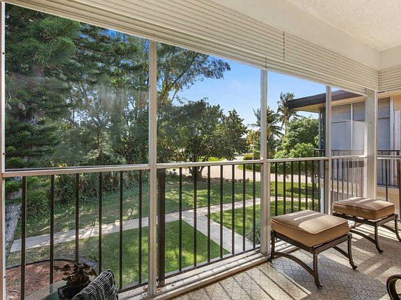 Charming beachside community! If you are looking for a place to relax...spacious condo in intimate enclave - Corner unit with great windows - Across the street from the beach with LOW CONDO FEES - IMPACT GLASS windows and doors - Inviting screened balcony with wonderful privacy overlooking greenery and Australian Pines - NEW A/C 2016 - A taste of old Florida with beautiful grounds - Only 32 units, adjacent to the Estate section of luxurious single family homes - Terrazzo floors underneath the carpet (visible in hall closet) - Stack washer/dryer in unit - Covered parking and storage closet just steps away - Well maintained 55+ Community with a pool and deeded beach access - Newly Renovated Salt Water Pool and expanded patio area - No pets permitted - Must own 3 years prior to leasing