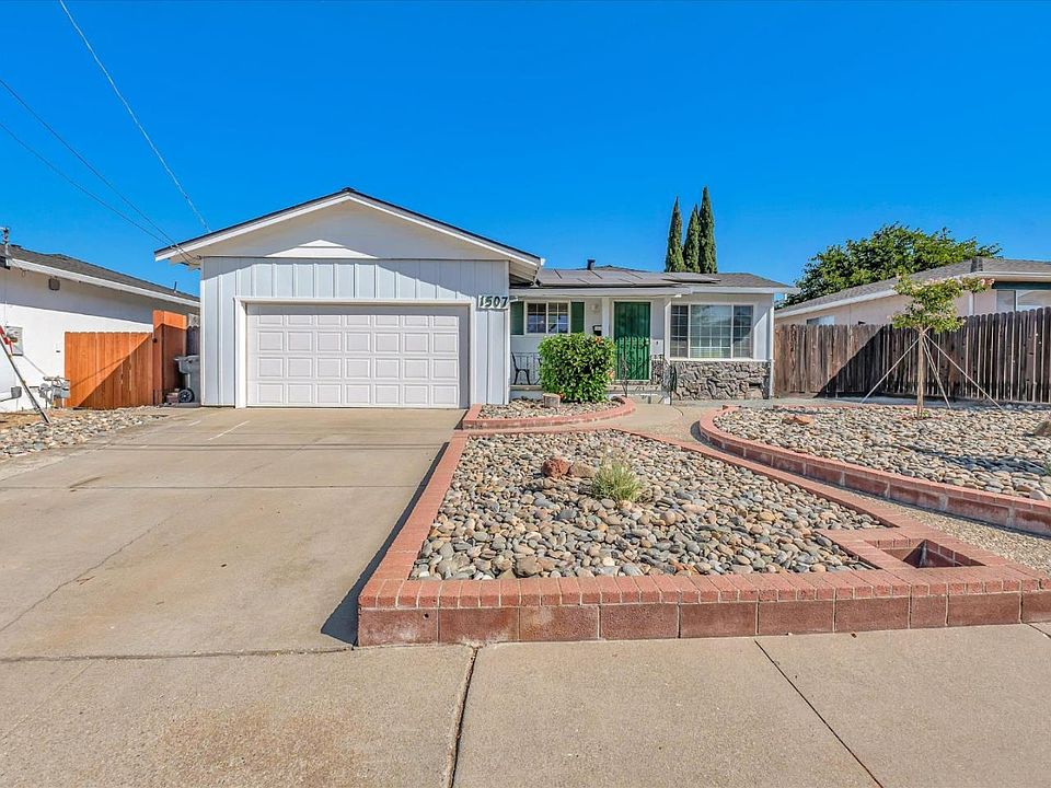 Welcome to this charming 3-bed, 2-bath house. This home offers a perfect blend of comfort and functionality, making it an ideal choice for families and individuals alike. As you step inside, you'll be greeted by an inviting living space that boasts an abundance of natural light, creating a warm and welcoming atmosphere. The open-concept design seamlessly connects the living room, dining area, and kitchen, making it an excellent space for both entertaining and everyday living. Whether you're preparing a gourmet meal or a quick snack, this kitchen provides both the space and the tools to meet your needs. The countertops and backsplash are quartz and the dishwasher is brand new. Outside, the house continues to impress with its low maintenance front yard and newly painted exterior. The composition roof and solar panels were installed in 2022 as well as new HVAC. Don't miss the chance to make this house your new home and immerse yourself in all the comforts it has to offer.
