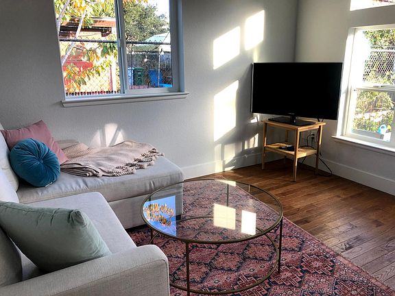 BRAND NEW One Bedroom Cottage near Ashby Bart This fully furnished unit is available for rent in December and January. Full kitchen, including a dishwasher, microwave, stainless steel appliances, and everything you need to cook and eat In-unit washer/dryer Hardwood floors AC and heating in living room and bedroom Everything is completely brand new Door between living room and bedroom for extra privacy TV with Apple TV Comfortable Queen bed Large bathroom with full bathtub / shower Fast wifi Great natural light (two skylights in the kitchen and one in the bathroom) Utility storage closet and large closet in the bedroom Nest smoke alarm It's a great location: 1/2 mile to Ashby Bart Close to two great parks (Grove and San Pablo) Creekwood Cafe is around the corner Easy walk to the Tuesday Berekely Farmers Market on Adeline We're happy to give virtual tours upon request. The unit is available for rent in December 2020 and January 2021. Ideally we'd find someone who wants it for both months, but we can be flexible. Utilities are all included. Pets may be permitted by request. Street parking is available, but there is no dedicated spot.