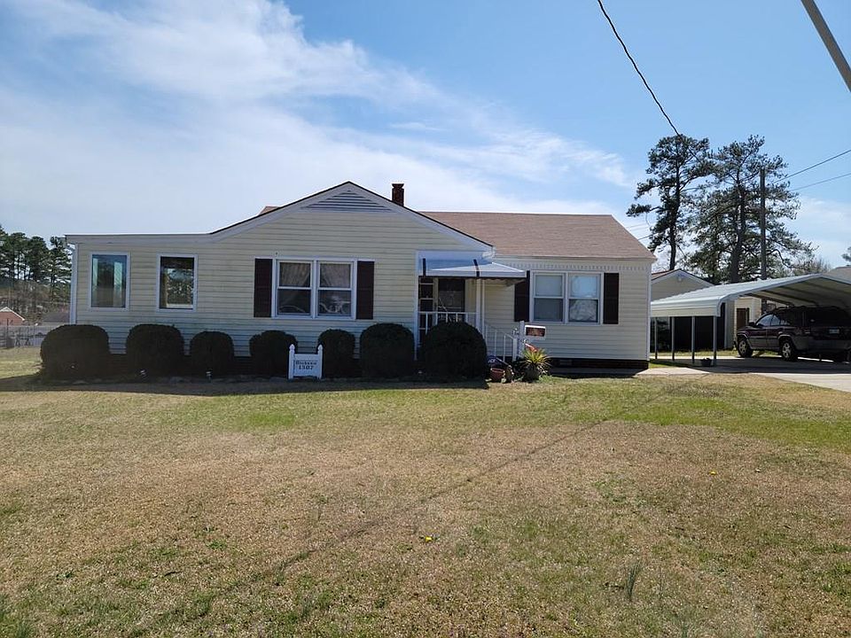 Situated on over half an acre, this 3 bedroom, 2 bath home is within walking distance of Belmont Elementary, a public boat landing and Roanoke Rapids Day Park. The large eat-in kitchen has a pantry, newly painted cabinets new hardware and new countertops/sink/fixtures. A 10 x 14 sunroom is off the LR and could be a playroom, office, etc. The master bedroom, bathroom and separate laundry room were added on many years ago. The house has vinyl fold out replacement windows, (2)detached two car carports, a 26 x 16 one car detached garage with lean-to and a storage building. The roof is less than 5 years old, the garage door is about 5 years old, the hot water heater was replaced about 2 to 3 years ago.