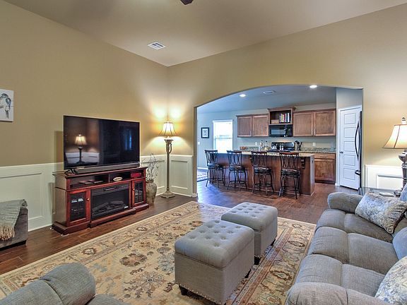 Like new, great split floor plan, Open kitchen with nice pantry and desk area, Granite island, eat in kitchen nook can also serve as a second living area, wood look ceramic tile, big utility room, great storage, master has coifed ceilings, master bath has 2 closets and 2 sinks and a big shower, Nice neutral colors throughout, Archways and 10 foot ceilings. Sidewalks, privacy fence, covered porch and patio. Tucked back in the neighborhood for privacy and low traffic. Excellent, like new condition.