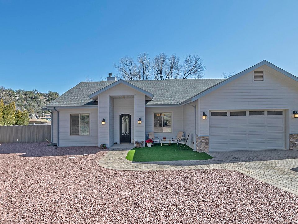 Country Club Estates home built in 2016, is on the Golf Course, has Pond and Mountain views, Covered RV Parking, and No HOA! This 1,768 square foot home has single level living, vaulted ceilings, and a floor to ceiling faux stone fireplace in the great room. The kitchen has a pantry, lots of storage, granite countertops and a breakfast bar. The 2 primary suites have bay windows that take in the views and both have access to the covered back patio. Primary suite #1 has dual sinks, a jetted tub and step in shower. The 3rd bedroom has a hidden Murphy bed and if you would rather have the closet, the Murphy bed can be removed. The rear covered patio has lots of room for your guests to watch wildlife or the fireworks from Green Valley Park on the 4th, there's plenty of room for your grill and.. Your kids and pets will love the recently installed artificial turf in the back yard. The 2 car, oversized attached garage is approx. 650 sq. feet, has 10 foot ceilings and lots of storage for your treasures. Just outside there's covered RV Parking and a Conex for additional storage and the lot is 0.50 acres and fully fenced. The home is plumbed for propane and can be connected to the underground piped propane system. Just through your back gate it's a short trip over to Payson Golf Club where you can enjoy dinning in the restaurant or on the outdoor patio. This home would make a great weekend getaway or a full time residence.