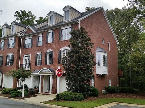 Beautiful 3 BR/2.5BA end unit in great Roswell location. John Wieland gated community, with clubhouse, pools, tennis courts and nature trails. Coveted end unit provides extra light, privacy and side yard. Lower level has finished bedroom, storage room and is stubbed for bath . Main level has sunroom off kitchen and deck w/wooded and seasonal lake view. 2 Bookshelves, fireplace and bay window overlooking side yard. Top floor has 2BR/2BA, large master and bath, walk in California closet and sitting room. Walk to shops and restaurants! Near downtown Roswell & Canton St.