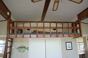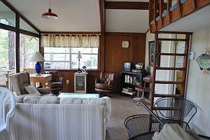 True Lake Martin cabin made for relaxing and fishing. Large deck on back with built-in seating all around. Nice dock at water, covered boat slip, good sitting area. Nice flat yard with established landscaping and circle drive. Living room/dining/and kitchen combo in very open floor plan with vaulted ceiling and sleep loft. Master, bath, and laundry on one end for privacy. Priced to sell