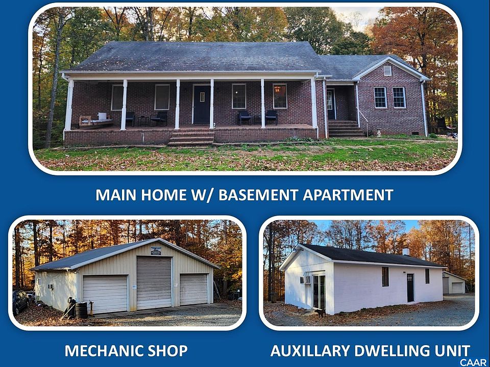 Discover a rare & exceptional property with unparalleled functionality with 1.79 acres, a custom-built main home, a basement apartment, an auxiliary dwelling unit (ADU), & a fully equipped mechanic’s garage. The main home features a spacious open-concept kitchen (2022), family room, & dining area. The luxurious primary suite boasts his & her closets & an updated bath. The home is handicap friendly with 36'' doors & hardwood floors. Enjoy a charming covered front porch and back deck. With 3 bedrooms, 2 full baths & a dedicated laundry, this split floor plan offers practical living. Exceptional flexibility & income potential abound: The BASEMENT APARTMENT is perfect for an in-law suite or long-term rental, with a full kitchen, 2 rooms with walk-in closets, a full bath, private entrance, & laundry. The ADU is a massive asset with a full kitchen (2024), bedroom, den with a woodstove, full bath, laundry & mini-splits (2023). The fully functional MECHANIC GARAGE is a dream workspace: 3 large bays, a dedicated office, a 10,000lb lift, & 100 amp/220 breaker. Convenience is key with Ruckersville, Gordonsville, & Shenandoah National Park, renowned vineyards & breweries within 21 miles. Don’t just buy a home-invest in a versatile lifestyle.