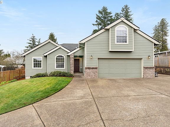 Located on a cul-de-sac with RV parking, this home offers main-level living with a bonus room and half bath above the garage. The great room features vaulted ceilings, a fireplace, a dining area, and olive wood flooring extending through the entry, great room, hall and primary bedroom. The kitchen overlooks the great room and includes an eating bar and nook. A covered patio with a gas hookup for a BBQ is accessible from the great room.The kitchen has been fully remodeled with new cabinets, countertops, stainless steel appliances, and tile flooring extending into the nook. The utility room has also been remodeled with new cabinets, countertops, and tile flooring. The primary suite includes a remodeled bathroom.Close to Nike, Intel and Columbia Sportswear with easy access to HWY 26! High efficiency furnace and A/C installed with in the last 3 years, new roof in 2015.