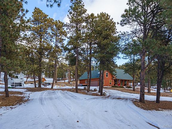 True Colorado lifestyle living! Fall in love with this light and bright lodge-style home with tons of oversized windows let in the 300 days of annual sun and beautiful hardwood floors that extend throughout most of this main level. The kitchen boasts upgraded cabinets, solid surface counters, and stainless appliances. There is a formal dining room and 16ft vaulted ceilings in the family room. This special area also has a wood burning stove and stone faced gas FP. The large master bedroom has coffered ceilings, walk-in closet, and attached 5pc ensuite with oval soaking tub, walk in shower and double vanity. Upstairs is a spacious loft area/bonus room - perfect office or playroom! Over 1,800sf of accessible crawlspace storage. Tons of outdoor entertainment opportunities with horseshoe pit, archery range, zip line, fort, dog run/kennel, greenhouse, and over 5 patio areas for BBQs, get-togethers and relaxing on your own piece of Colorado! New roundabout driveway, central AC and the propane tank stays! Privately nestled on a 5acre treed lot in Spirit Lakes - w/private park, hiking and ponds. A truly stunning home!