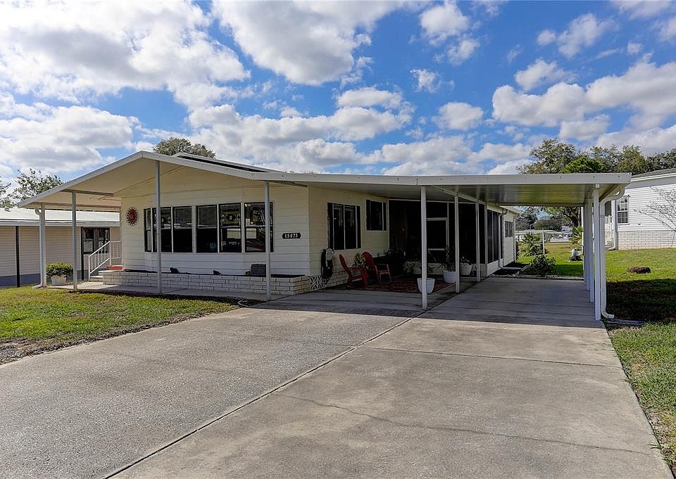 Beautiful 2 bedroom 2 bath manufactured home in the highly desirable 55+, golf course community of Brookridge located in Brooksville Florida. This home is located directly on the 11th fairway. Enjoy the open views and players from the 10’ X 16’ rear screen enclosed porch with a vaulted ceiling. Inside the home you will find it is immaculately maintained. Kitchen and bathroom cabinetry and countertops have been upgraded along with newer kitchen appliances. There is both a living room 14’ X 20’ and a family room 15’ X 23’. The primary bedroom is quite large 11’ X 18’, vaulted ceiling, a walk-in closet and a standard closet. When you drive up to the home there is a double wide driveway leading up to a double wide carport 22’ X 26’. A side screen enclosed porch is 12’ X 14’ and the workshop/laundry is 12’ X 12’. The A/C system is 2017 and the home has a metal roof over. This home shows pride in ownership throughout. Brookridge is a community with tons of adventures for active adults. In addition to the golf course there is also a pool, recreation, tennis courts, pickleball courts plus planned activities. There is security with a 24 hour guarded entrance. You own your own lot and pay very low $50 a month HOA fees.
