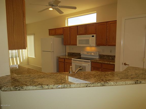 This immaculate home is graced with Beautiful Granite slab countertops, Large lot (almost 1/4 acre), Great location within the community & Easy access to amenities/shopping. Wonderful kitchen features Granite countertops with hues of golds and beiges, Stainless steel sink, Designer style 1-touch faucet & all GE appliances. Tile throughout except bedrooms & great room living area. Other features include master BR bay window, Master bath dual sinks, Bull nose edged vanity countertops, TOTO brand comfort height toilets, Classy style closet system in master closet, GE front load washer & dryer, Built in utility sink, Coated garage floor, Garage cabinets, Expanded patio & cover, Cool decked patio with knee high wall, Vacation mailbox, Preferred hip roof front exterior elevation.