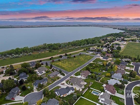 Welcome to this custom built 3300 sq ft luxury lakeside retreat! Nestled in a small gated community. Beautiful lake, sunset & Mtn. views! Ample space for entertaining inside and out. This home features a 4 car garage w/10 ft by 12 ft door boat bay. Stepping inside from the covered front porch deck you’ll find a spacious Great room w/cathedral ceiling, alder wood built-ins, tiled gas fireplace + sitting room w/ tons of natural light from the many wood wrapped windows w/views of the lake. The chef’s kitchen boasts granite countertops, bar seating, and a large island. Awesome master w/en-suite bath featuring a floor to ceiling tiled shower, separate soaker tub, and dual vanities… you’ll be able to unwind and relax! Private office on the main floor and the huge bonus room upstairs w/amazing view. Out back, enjoy the large covered patio, outdoor firepit, and ½ acre well manicured private yard. With quick access to wine country, downtown Caldwell, Mallard Park and Lake Lowell, this home has it all!
