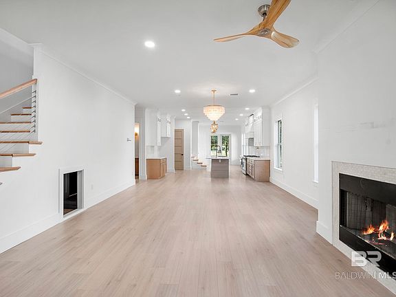 Brand New Construction in the desirable Magnolia Springs gated neighborhood of The Commons! Mature Oak trees lined cobblestone streets siting on the Magnolia River, this neighborhood offers a swimming pool, pool house, river access with 4-sided wood burning fireplace, fishing ponds, and green open fields. This 2025 gold fortified home built by Mitchell Coastal Homes offers attention to detail in its over 3000 SQ FT, 4 bedrooms 3.5 bath 2 story house. Hardiboard exterior, 10 FT ceilings, 8 FT doors, Quartz counters and marble backsplashes, white and wood kitchen cabinets, gas fireplace, Forno gas range and drawer microwave, copper sink and gold fixtures. Oak vinyl plank flooring throughout, spray foam insulation. Open concept. Split bedroom plan. Cable railings. Front and back porch. Double car back entry garage with wall mount openers. 3 sets of stained mahogany front doors. Brick paved courtyard. Landscaped yard including zysoia sod. HOA is $150/month and includes cutting your grass! Located 1 mile to boat launch, 1 mile to Jesse's restaurant, and ~30 minutes to Gulf Shores white sandy beaches. All information deemed reliable and accurate. Buyer to verify all information during due diligence.