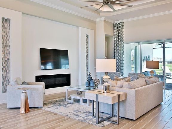 Webb's Reserve at Babcock Ranch offers a unique luxury golf experience with a superb range of single -family, coach and veranda homes. This luxe single-story home features a formal dining room off the foyer, followed by an open Great Room with elegant tray ceilings and a modern kitchen. Through sliding glass doors is an oversized covered lanai ideal for outdoor parties. In addition to the owner’s suite with a spa-style bathroom, there are two bedroom suites and a versatile den. Virtual tour, photos & rendering are of model & are used for display purposes only. Estimated delivery Sept/Oct 2024.