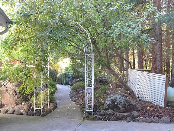 PRIVACY & ELEGANCE! Dare to be impressed from the moment the double wrought iron gates open to welcome you home! Exposed aggregate driveway, brick accented entry with a beautiful fountain in front & lovely rose gardens. The interior offers a spacious floor plan with a foyer to a formal sunken living & dining room, impressive kitchen w/a granite center island, prep sink, pull out shelving, gas stove top, 2 pantries and in kitchen dining space. The elegant yet functional family room is open to the kitchen and boasts a custom polished granite fireplace & hearth with gold plated face & gas starter, a built-in sewing/office area hidden behind louvered doors that can easily be hidden in an instant & french doors to the back deck. Your personal master suite offers 2 walk-in closets, doors to the back deck, private bath with a 2 person jetted tub, shower with steam sauna, marble vanity counters w/dual sinks, plus plenty of storage. All tile floors offer radiant heat for constant comfort, plus central heat & air, several skylights w/ blinds that operate remotely, central vacuum system, a bonus room with a 1/2 bath & closets plus built-in bookcases & extra storage, commercial water heater w/recirculating system for instant hot water throughout the home. Approx 3000 sq.ft back deck offers privacy & peaceful forest views plus a landscaped yard with year around color, a lattice covered hot tub, walking paths and a serene koi pond with a waterfall feature! Plus so much more!!
