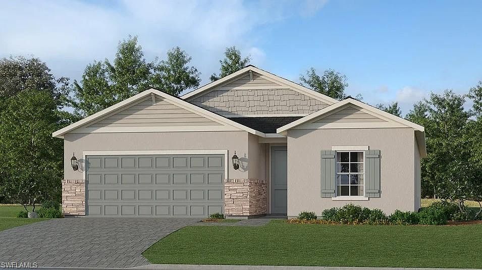 Surrounded by lakes and marshes, Portico is a masterplan community in the popular city of Fort Myers, FL. Enjoy a community that offers scenic water views and provides several amenities , such as a swimming pool, fitness center, playground and tennis court. This new single-story home is perfect for families who live an active lifestyle. Two secondary bedrooms share a bathroom in the hall at the front of the home, while a third is around the corner with a private bathroom. Down the foyer is the open living area, which includes a kitchen, dining room and family room with a covered patio. The owner’s suite is tucked into the rear corner with an attached bathroom. Prices and features may vary and are subject to change. Photos are for illustrative purposes only. Estimated delivery date is Mar/April 2026.