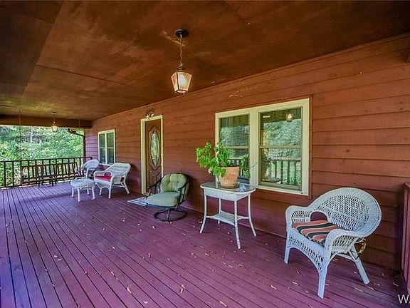 Country solitude and city convenience. This home is located just 4 miles from the new Publix on Hwy 69N. It is a beautiful, spacious cedar siding home with long front porch and 16 x 16 deck on rear. Also a large glassed in sunroom adjoining deck. Located on 2.32 acres offering fig trees, blueberry and blackberry bushes.There is a drilled well for watering yard and it has water line from front of property to the back.. In the backyard there is a 20x50 metal cover for storing an RV or lawn equipment with power. The 3-level house has a total of 4089 sq. ft., including a fully finished basement of 1490 sq. ft. The basement contains two office spaces, a den with fireplace insert, a crafts room, and a totally underground safe room. There is a formal living room with wood burning fireplace, dining room, plus an eat-in kitchen. The large master bedroom has its own bath with jetted tub. The water closet and shower are separate. The other two bedrooms are upstairs with 1.5 baths and closets galore.