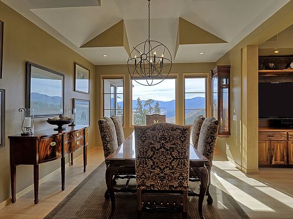 Elegant in every way, this low maintenance home offers main floor living. The open floor concept is perfect for entertaining inside and out. Incredible MT. EVANS views from GR, Deck and Kitchen and 180 degree mountain views throughout the home. Lovely, usable 5+ acres backing to 600 acres of community owned open space. Master retreat with luxury spa bath and private deck. The gourmet kitchen has custom maple cabinetry, quartz countertops and gourmet appliances. Kitchen and DR are open to great room that features a massive stone fireplace and custom walnut TV cabinetry. Custom maple floors and stone tile throughout. Great outdoor living area with glass windbreak, gas heat and kitchen/grill area. Radiant in-floor heat and high efficiency insulation package. Heated attached garage with storage in the attic. Professional sprinklered landscaping. 3.5 gpm DOMESTIC use well. AWARD WINNING COVENANTED AND FIREWISE DESIGNATED COMMUNITY. Paved roads, natural gas, phone/DSL. Financially healthy and well run HOA