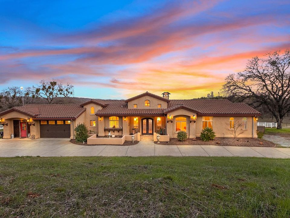 A pristine one-story Mediterranean residence on 4.8 +/- acres boasts amazing views & offers serene living. The grand entrance to this custom-built home invites you to stay a while. Savor in a chef's kitchen complete w/high-end appliances that are ready for hosting meals & access to dine al fresco poolside if you'd like! Find comfort in your primary suite that includes a reading nook ideal to curl up w/a great book & luxurious tub to wash a long day's work away. Work from home? Look no further than a dedicated office space in addition to the bedrooms. If you need an abundance of storage, this home has plenty of room inside & out, even add that ADU you've always wanted. Never worry about power outages as this home comes equipped w/ a Generac whole-house generator that has its own fuel source all while saving you money w/ a new solar system. The fenced backyard & pool area are ready for the upcoming warmer weather. The fully fenced property contains a new Castlebrook shed row barn w/water & electricity, a round pen, & a tack room. New 3-rail vinyl pasture fencing safely houses your equines. The separate workshop connected to the garage allows for any project to be completed w/ ease. Ideally located between the quaint town of Grass Valley & the shopping & dining amenities of Auburn.
