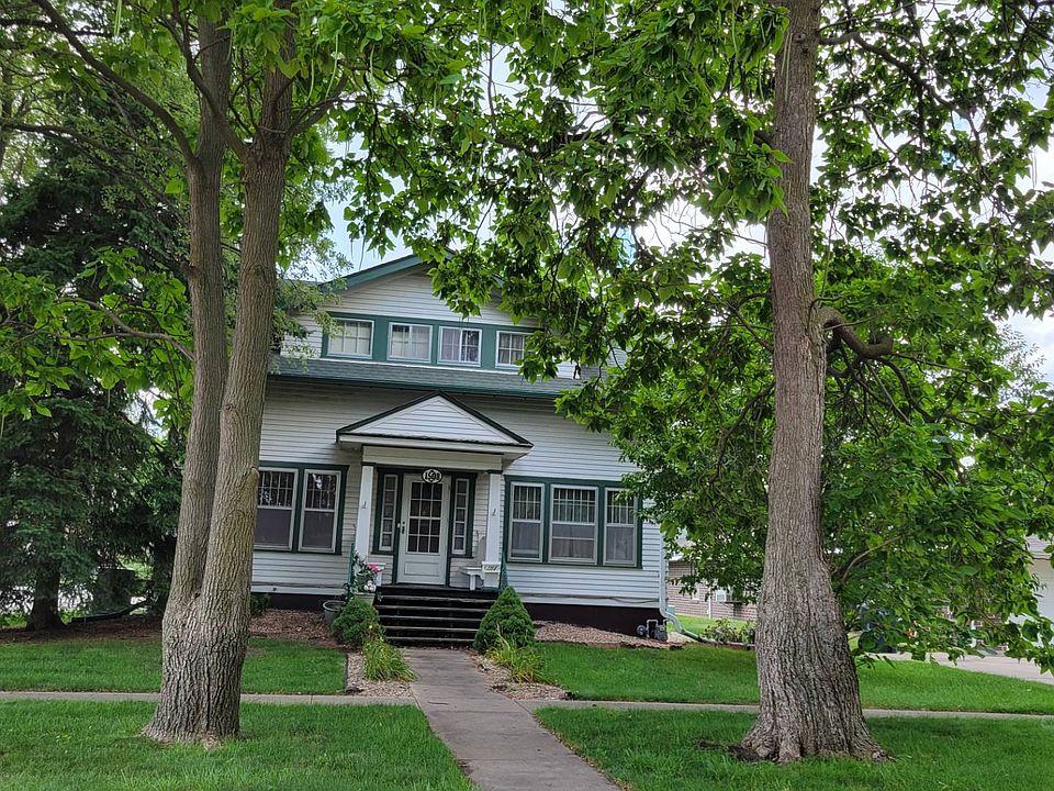 1 1/2 story home with 3 bedrooms and 1 3/4 baths. Has a parlor with a wood fireplace and a family room with a gas fireplace. Kitchen remodeled in 2019. New luxury vinyl plank flooring professionally installed in the family room and kitchen in 2022. UGSP with own well and rain sensor. Nice established trees in the front yard. Concrete driveway and alley to the South. All appliances included. Close to Elementary school, grocery store, library and downtown!