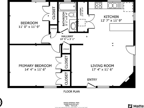 - Total interior livable area: 816 sqft