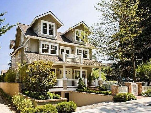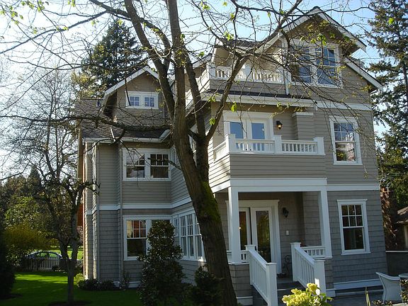This spectacular Craftsman home was custom built with fine materials, the latest amenities, and extraordinary attention to detail. Situated on a quiet street bordering Broadmoor Golf Club, the three-story house enjoys tranquil fairway vistas. The home is fully air-conditioned, and an elevator accesses each level, including a full basement. A gate set in brick pillars opens to a herringbone-patterned brick walkway and level front lawn. The house has exterior walls clad in shingles and a symmetrical façade with a center balcony, two dormer windows, and a full-width front porch. A driveway leading to a basement garage is bordered by raised planters. A front door with beveled glass panels and sidelights opens to a large living/dining area with high ceilings, crown molding and wainscoted walls. The living area has a gas fireplace with marble surround; the dining area offers a wall lined in built-in cabinetry designed for linen, china, and crystal storage. Three glass-paneled pocket doors open to the adjoining kitchen and library/den. Floors throughout the main and second level are red oak hardwood. An outstanding chef’s kitchen features granite counters and handmade subway tile backsplash. Traditional white cabinetry has brushed nickel fixtures and upper cabinets with glass doors and display lighting. Top-of-the-line appliances, all stainless steel, include a Viking French door refrigerator/freezer, Viking 6-burner gas oven/range, and Bosch dishwasher. A large center island holds a GE microwave and affords great workspace. A deep stainless steel sink is equipped with dispensers for hot and filtered cold water. Pull-out doors provide ample pantry space. Neighborhood Description Madison Park is a great in-city neighborhood. Close to everything in Seattle but a distinct little community all its own.
