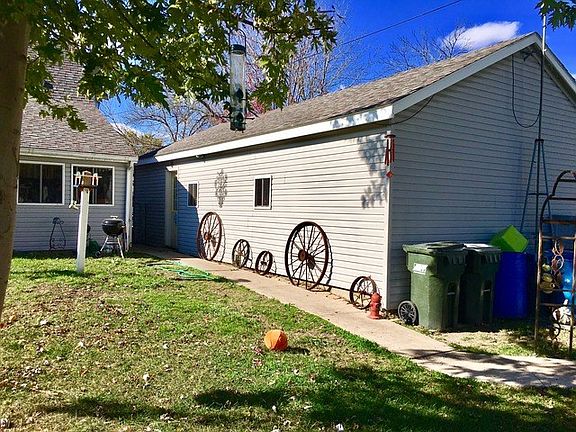 Close to Washington School. 3 bedrooms, oak kitchen with appliances, newer flooring, large full bath, 3-season room, Furnace and central air (2002), driveway (2003), water heater (2015), 10x19 lofted shed, large 36x21 detached garage, chain link fenced backyard with multiple gates and alley access.