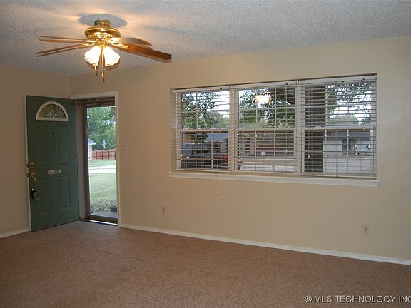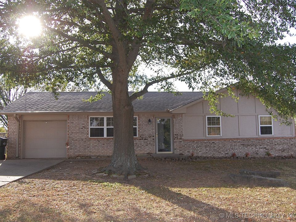 Located in a quiet cul-de-sac is this perfect starter home. This home offers 3 bedrooms and 1 1/2 bathrooms. Kitchen includes a double oven that stays with home. Hall bath has a newer step in shower with glass doors. The home has a concrete drive and a covered parking area and a one car garage with electric overhead door. Utility room is in the garage just outside of the kitchen. Step out the patio door from the kitchen to the backyard that offers a nice screened in patio. The backyard also has two nice storage buildings, one has been fenced and used as a chicken coop! Partially fenced yard with additional fencing to complete.