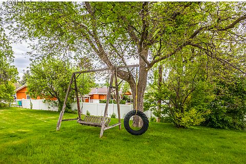 This large 5 bedroom, 2.5 bath farm style home needs a little love, but is a rare find. Huge Great Room with brick fireplace. Oak hardwood floors throughout most of the home. Over-sized bedrooms on upper floor. Two adjoined lots, fenced yard, well house, permitted well for irrigation use, with fruit trees. Attached, covered car-port. Screened in back porch. Full basement with separate, outside access. Last home on a quiet cul-de-sac.