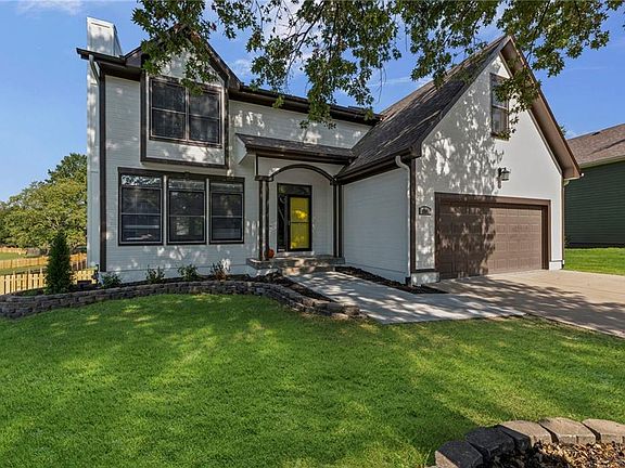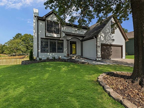 NEWLY REMODELED HOME CHECKS ALL THE BOXES! 4 bdr, 2 story, finished walk-out basement, two laundry areas, two fireplaces, nice sized garage with plenty of cabinets, spacious deck, huge fenced in backyard, close to shopping and easy access to 71 to 435/470. Easy access to the Kansas side. SO MUCH NEW FOR THE PRICE!!! Freshly painted, exterior and interior, landscaped, new concrete front walkway. Kitchen and Hearthroom room updated with stained cabinetry, refinished hardwoods, new backsplash, sink and faucet. Master bedroom/bathroom have been remodeled with barn door, new vanities/sinks/hardware...new toilet closet...amazing new huge 7.5 x 5.5 walk-in tiled shower! Large walk-in master closet w/natural lighting. Walk-in master closet has laundry hookups/stackable washer & dryer...such convenience to have laundry on two levels! Master bedroom had French Doors...Barn Door to Master Bath and another adjoining door for added convenience to 4th bedroom/office/sitting room/nursery. Updated hall bath and half baths. Enjoy family evenings in the large finished walk out basement with all new flooring. Finished basement has half bath as well as bar/sink area w/additional cabinetry...walks out to an enclosed sun room/porch for additional space/entertaining. Peaceful early mornings sitting on the spacious deck sipping coffee overlooking the back yard.