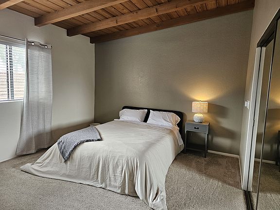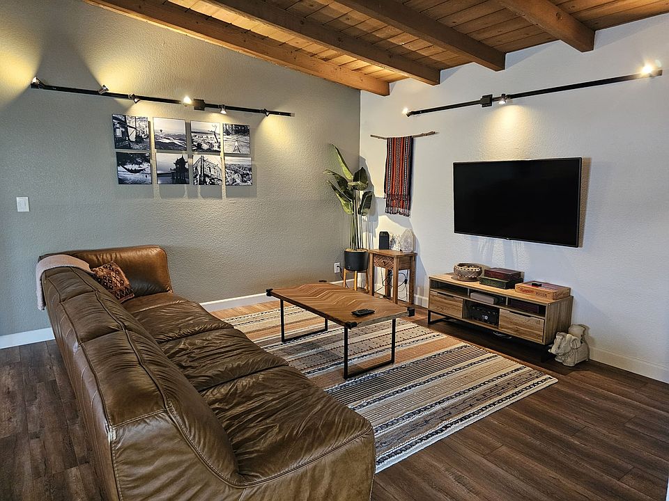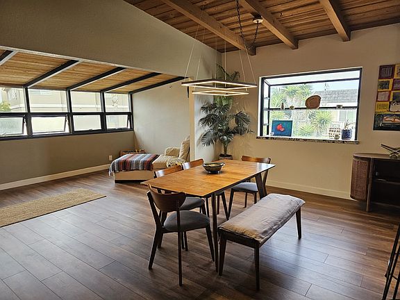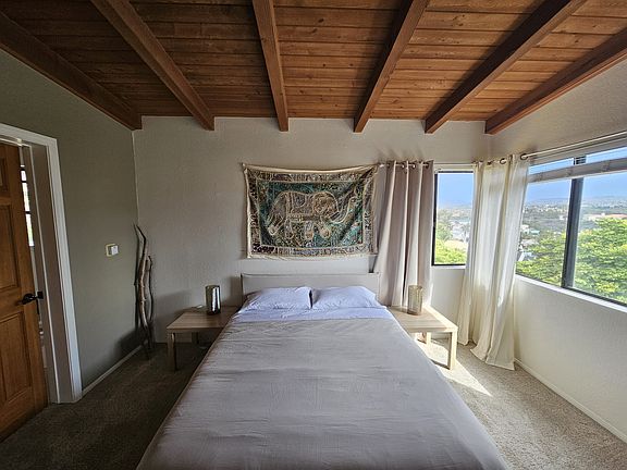 This beautifully updated 3 bedroom 2 bath condo is located in the heart of the peaceful and vibrant beach village of San Clemente just steps from the sea. This incredibly spacious condo is full of character, with vaulted beamed ceilings throughout that exude coziness and charm. There are 3 generous bedrooms, a beautifully updated kitchen, cozy family room with smart tv and wifi, and a private, vast deck with gorgeous views to let you soak in the sunset after a great day at the beach. Apartment comes fully furnished. Looking for "snowbirds" or anyone interested in monthly rentals starting in January for 1, 2 or 3 months. The space Entry and living room with large couch, coffee table and smart tv with Amazon fire stick, wifi provided. Dining room table that seats 6-7 people. Updated kitchen with stainless steel appliances. Fridge, freezer, dishwasher, stove, oven, microwave and large kitchen sink. Dishes, cups and silverware service for 8 provided. General supplies for cooking in the kitchen provided as well. Master bedroom with en suite bathroom: Queen bed, mirrored closet and dresser. Bedroom 2: Queen bed, wardrobe, couch and private access to the large back deck. Bedroom 3: Large room with queen bed and rocking chair, mirrored closet. Second bathroom with tub and shower. (Both bathrooms have a shower tub) The large sun deck is completely PRIVATE and yours for the stay. There are 2 private parking spaces on the driveway in front of the garage for your use. Cute landing at the top of the stairs at the front door with a small table and chairs to relax and catch the sunset. Other things to note * As of July 25, 2024, there will be some construction happening in the next door lot. Owner pays for water and wifi. Smart TV included. Renter pays for gas and electric. Rent duration 1-3 months