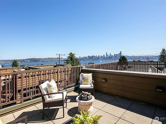 Located on the quiet end of California, breathtaking views of Elliott Bay, Cascades & Downtown - spanning Magnolia to the Stadiums - take center stage in this amazingly located N Admiral townhome. Thoughtfully designed w carefully crafted details - crown molding, stone accents, warm hardwoods, built-in sound. Open kit/din/liv anchored by a gas FP is the perfect place to wind down. The expansive primary occupies the entire 3rd level. Rare upper level rec room/den (3rd BR?) w wetbar opens to SPECTACULAR must see roof deck w 180o views. Warm summer days call you to gather here. The natural gas fire pit extends the party from summer to fall. New paint/carpets. Turnkey. Off-alley pkg. Walk to Met Mkt, Admiral amenities, water taxi, Alki. No HOA.