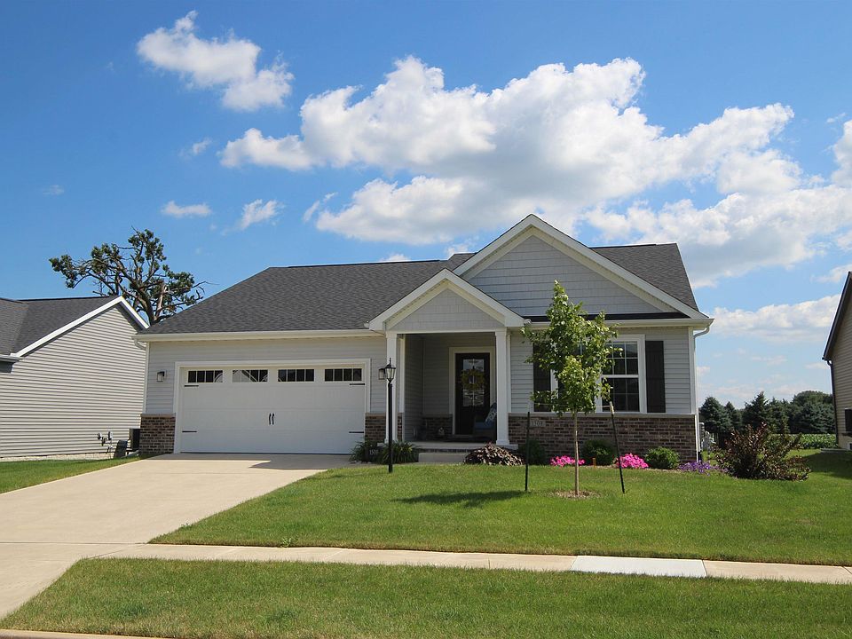 Fabulous find! Desirable & newer 4BR/3BA ranch offers over $60,000 worth of improvements & upgrades! Wonderful floorplan features a fireplaced great room with cathedral ceiling and split bedroom design. Beautiful hardwood floors! Upgraded kitchen features custom maple cabinetry (professionally painted 20) with crown molding plus new tile backsplash & upgraded granite tops in 20. Extended island breakfast bar with E-granite sink, new cabinet pulls & 2 pendant lights. Spacious double pantry plus stainless steel GE appliances. Charming dinette with slider to patio overlooking newer black aluminum fenced (10/2020) yard. Spacious master en suite includes a walk-in closet & a private bathroom with dual sinks & tiled shower. Convenient main floor laundry room with locker system. Professionally finished lower level by Mitchell Bros. construction in 20 with huge family room, 4th bedroom with egress window & full bathroom. Huge storage room (approx. 740 sq ft) with a double wide laundry tub.