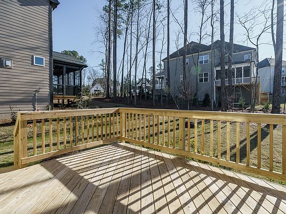 Ridgefield Farms- Homesite #78 This lovely Greenville home design at Ridgefield Farms in Cary, NC has a large backyard, a first floor guest suite,and hardwoods in all of the first floor living spaces.The gourmet kitchen has quartz countertops, stainless appliances, and a walk-in pantry with wood shelving. Off the foyer is a living room which could also be used as a study, and a dining room withtray ceiling,wainscoting and a pass-through butler's pantry. The kitchen and breakfast area are open to the spacious family room with tray ceiling, fireplace, andbuilt-in cabinets and shelving. On the 2nd floor, the loft and hallway have hardwoods and the large owner's suite has a tray ceiling, dual walk-in closets and dual vanities in the spa-like bathroom. There are also secondary bedrooms, laundry, and a sunny bonus room with plenty of space.The third floor has a huge finished space--great for a game