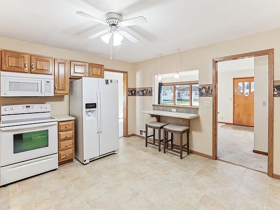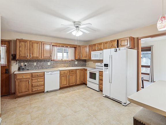 Well maintained 3 bedroom ranch on quiet cul-de-sac. Home features updated kitchen with all appliances, lots of cabinet space and moveable island. Convenient half bath located off rear entrance. Larger living room/dining area has plenty of natural light. First floor bedrooms have beautiful hardwood flooring and larger closets. Full basement offers plenty of storage and opportunity to add additional living space. Backyard includes a larger covered deck. Unique oversized 2 car garage with both front and rear entrances with an attached additional storage area. Quick possession possible. All information obtained from seller and public records.