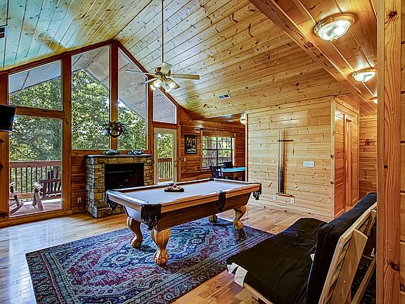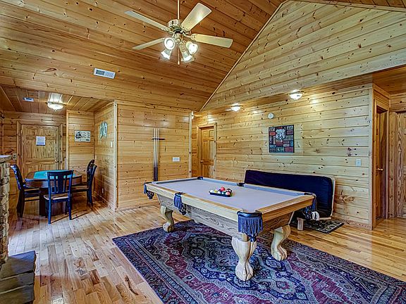 GROSS RENTAL INCOME of $165,023.47 in 2022. This 8 BEDROOM 7 BATH CABIN SLEEPS 25. IDEAL LOCATION FOR LARGE GROUP RENTALS - cabin is located in beautiful Hidden Springs resort located next to Dollywood and Splash Country, minutes from Rocky Top Mountain Coaster, and downtown Pigeon Forge. Resort offers an INDOOR POOL. When you walk into the cabin, you are greeted with by a kitchen on your left and a HUGE open living space with gleaming hardwood floors throughout, cozy stone fireplace, 2 LARGE DINING TABLES, and spacious living room. Cabin offers 2 GAME ROOMS. Recreation room on middle level features a huge game room with pool table, air-hockey table, foosball table and flat screen TV. Game room on third level offers another pool table, card table and a flat screen tv. 3 huge back decks to relax in the rocking chairs or soak in 2 hot tubs while taking in the wooded view. 6 KING SIZE BEDROOMS, 1 SPACIOUS BEDROOM WITH 2 QUEEN SIZE BEDS, 1 SPACIOUS BEDROOM WITH BUNK BEDS. AMPLE LEVEL PARKING, NO CRAZY MOUNTAIN ROADS TO GET TO CABIN, LEVEL PARKING. Community water and sewer systems.