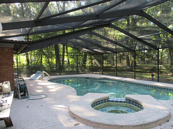 All brick home on larger lot, screened in-ground pool. Formal Living and Dining room, larger family room, inside laundry and utility room. All bedrooms are quite large and it has a split plan. Side entry garage, beautiful mature trees. Master features double vanity, garden tub, separate shower and water closet. This one has lots of potential. No CDD or HOA fees.