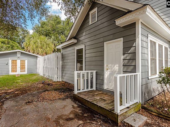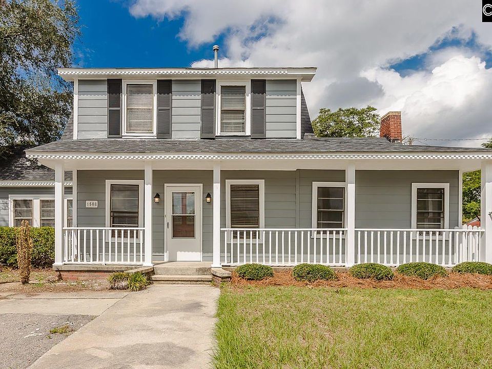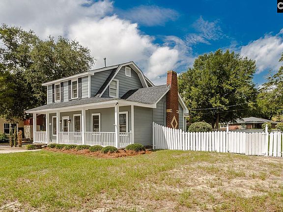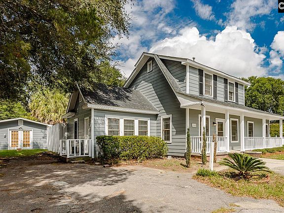 Charming Historic West Columbia home for sale on a DOUBLE LOT located near all major interstates, Downtown Columbia, Lexington, Fort Jackson and USC. This home features a rocking chair ready, sprawling front porch that allows entryway into a beautiful living area with a stone fireplace wall. The eat in kitchen features tile flooring, white cabinets, bar and black appliances. There are 3 BRs and an office with built in shelves...and listen up...We call this THE SECRET PASSAGE WAY...The bookshelves push in with hidden access into the walk in attic. Master is on the main with private bath and hardwoods. The bright and airy sun room in this home provides extra space for relaxation or entertaining while the large back yard features mature trees, fence and a HUGE structure perfect to convert to a garage apartment, man cave, She Shed, garage, hobby space or massive storage! Outdoor building has electricity. This must see home is priced to sell under market value and is move in ready for YOU!