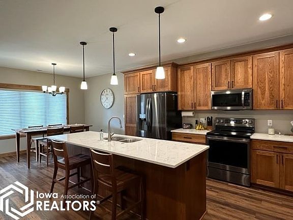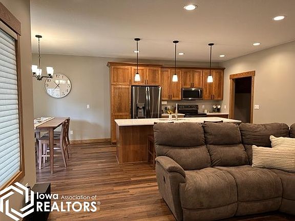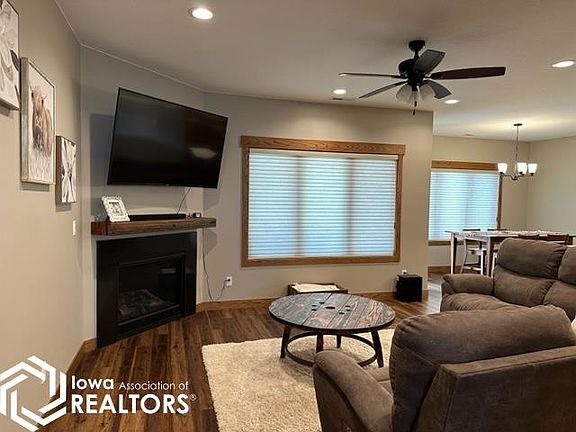 Townhouse with no steps-main floor is open kitchen and living room with fireplace, a bedroom/office, a full bath, a master bedroom with bath and large walk in closet, a laundry area, double car attached garage with a concrete deck out back for your relaxation.
