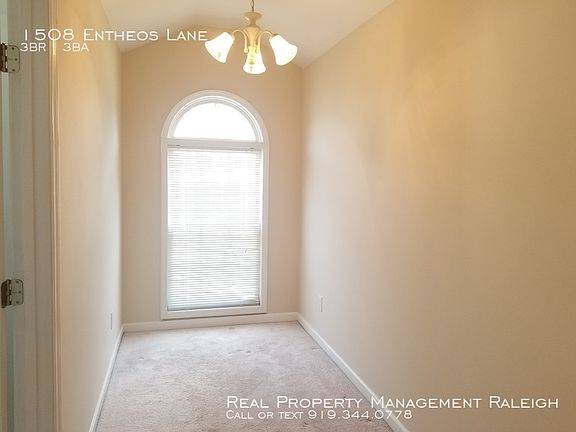 SCHEDULE A SHOWING ONLINE AT: showmojo.com/lh/157fc8b037 **Available Now Freshly painted 3 bedroom 2.5 bath home. Master bedroom and utility room on 1st floor. Two good sized secondary bedrooms on second floor with flex room that can be used for office, nursery, etc. Minutes from I40. When you lease with RPM Raleigh you also get access to our Rental Rewards Program that offers discounts on shopping, dining and much more. Move-in cost: Rent is $1200. Deposit is $1200. Administration fee is $100. Monthly Tenant Management Fee is $10. Interested in submitting an application? Please visit our website. Real Property Management Raleigh 8480 Honeycutt Rd, #200 Raleigh, NC 27615 www.rpmraleigh.com Office: (919) 481 0008 This is a service of www.rpmraleigh.com Real Property Management Raleigh is the leader in residential property management. Tenants can apply to rent online, pay rent online and even take a video tour of our available homes online! *Photos and videos are provided at the agents discretion, for purposes of advertising only, and may not be an accurate depiction of the current appearance and/or condition of the rental property.