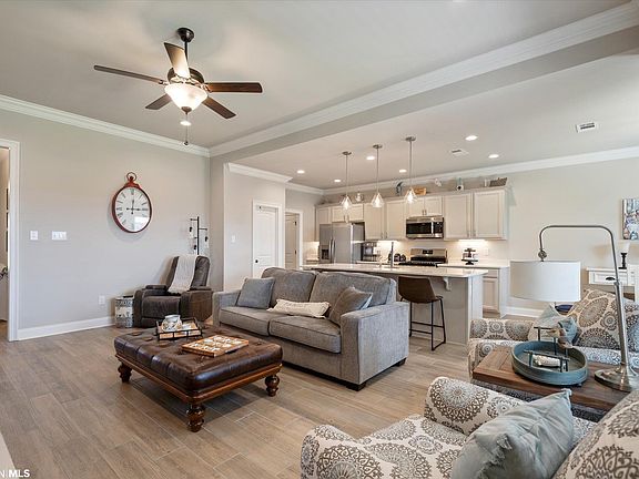 Price Adjustment! Beautiful brick with stucco home in River Oaks Community. Completed in September 2022. Pristine condition. This home shows like a model home. Open floor plan with beautiful plank tile flooring, gas range, tankless gas water heater, fireplace with gas logs, beautiful wide crown molding, Gold Fortified-Certified, and much, much more. Conveniently located to Foley shopping, South Baldwin Medical Center, golf and only 10 miles to the beach!! This is a must see. Buyer to verify all information deemed important.