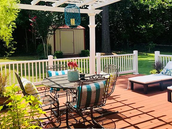This spacious home in the Forest Brook neighborhood has a split floor plan (master on one side, guest rooms on the other), with vaulted ceilings, a vented gas fireplace and custom trim in the living room. The cabinetry, custom built by Tucker Cabinetry, is featured throughout the home. Enjoy the private, fenced-in backyard with a deck and pergola. A gas line is run to the grill. The second floor includes a 500 square-foot bonus room, a full bath, and a lot of walk-in, floored attic space. Other key features: Library/office with custom desk/shelving His and hers walk-in master closets Tray ceilings (master bedroom and dining room) 2-car garage Gas range and oven Gas tankless hot water heater French drain in the backyard