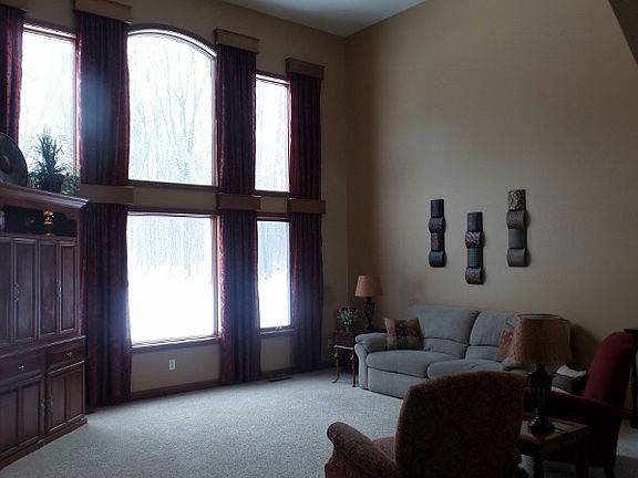 Divine inside and out! Many special accents throughout this lovely home. Double tray ceilings, over 20' ceiling in great room, windows cascading from ceiling to floor, oversized master suite, with private en-suite on main level, walk in tile shower, Jacuzzi tub, double sinks & walk out patio. Double sided fireplace between great room and hearth room. Top of the line stainless steel appliances included in purchase. Formal dining off of the kitchen as well. Three bedrooms on the upper level as well as den/game room and guest bath. Basement is finished with home theatre room built in, full wet bar, pool table area and a spacious storage room. Level lot backs up to the woods for extra privacy. Seller including a one year home warranty at closing. All buyers must be pre-approved prior to showing. Seller is providing 1 Year HMS Home Warranty.