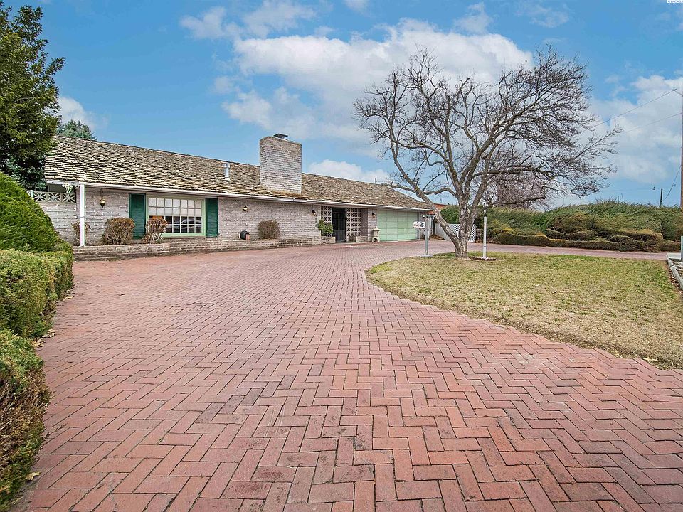 MLS# 267082 This extremely well built home is a must see! With 3 large bedrooms and 2 baths, it is sure to please. There's even a private office, just off the kitchen. You enter the home onto a hand placed chevron patterned brick circular drive. Then the gated breezeway welcomes you into your charming private oasis! This fully fenced and landscaped yard offers two covered patios with large gorgeous water fountains which overlook an incredible in-ground 8 1/2' swimming pool! On the back side, you'll enjoy 2 pool dressing rooms! There's another storage room for pool and/or yard toys! This unique home offers Dutch doors at both the front and back entrance. The beautiful wood throughout the home makes up the floors, ceilings, cabinetry, and fabulous built-ins! There's an eat-in breakfast nook, and a formal dining room with French doors leading out to the other patio. The large living room offers a gas fireplace to keep you cozy. Let's not forget about the detached two car garage with opener. A definite must-see!