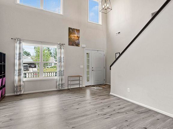 Come check out this spacious only 7 year old 4 bed 2 and a half bath home sitting on a pond with a great view! The main floor features 9 foot ceilings, a master suite, a nicely sized kitchen with ample counter space and cabinet storage, a beautiful sun room with an amazing view, and a great room with 2 story ceilings. Upstairs you’ll be enamored with the large loft area perfect for entertaining or a second living room. 3 more nicely sized bedrooms and a full bath round out the second story. Outside you’ll see one of the coolest features of this home, permanently installed holiday lighting on front of home! Choose from a variety of presets for various holidays or select your own design! This alone would cost you around $5,000 to do yourself! Many recent updates including vinyl flooring, all new hanging lights on main floor, new dishwasher (2022) single well stainless steel kitchen sink and faucet (2022) Ecobee smart thermostat with room sensors.