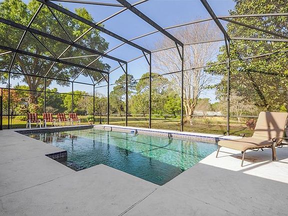 Upstairs MASTER SUITE with VAULTED CEILINGS and skylights, FRENCH DOORS open to extra BONUS MASTER SUITE LIVING ROOM with custom wet bar and mini fridge. CUSTOM BUILT MASTER BATH boasts oversized shower with DUAL RAIN SHOWER HEADS and separate 6 foot MULTI JET SPA TUB with Chromatherapy lights. WALK IN MASTER CLOSET with closet island and custom built shelving for both him & her. NEWER DUAL A/C , 2 STORY SCREENED POOL enclosure, tiled outdoor patio with OUTDOOR FIREPLACE overlooks OVERSIZED POOL with Pebble Tek finish and remote control multi color lights perfect for ENTERTAINING. ESTATE HOME on 1+ ACRE lot on CUL-DE-SAC street. A spacious CHEF'S KITCHEN with STAINLESS STEEL APPLIANCES, Large Center Island, DOUBLE CONVECTION BUILT IN OVEN, GRANITE countertops and CUSTOM WOOD CABINETRY, Bolivian HARDWOOD and STONE tile floors. Family Room with VOLUME CEILINGS, brick WOOD BURNING FIREPLACE adjoining Billiards/ GAME ROOM with WET BAR. Both Formal Living room and Dining room feature bay windows and crown moulding, while downstairs is finished with guest room with cabana bath and separate laundry room. Mature landscaping and fruit trees complete this fenced OVER ONE ACRE backyard retreat, complete with private well and irrigation system.