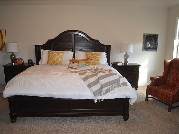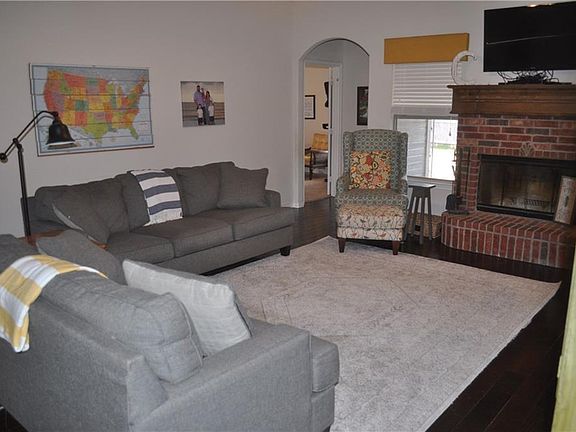 I love this clean, open and new 4 bedroom, 2 bath, 2 car garage brick home! Built in 2012, this home is in a quiet, family friendly neighborhood with an open split concept and a few unique additives from the only owners! The kitchen is complete with island, vaulted ceiling, walk-in panty, breakfast nook and mom-desk with hidden roll out drawers for printer and keyboard. Walk into an open living room with brick fireplace, recessed lighting, wood floors with windows looking out to the covered porch complete with another cozy fireplace. The privacy fence covers the large backyard. Very large master bedroom with vaulted ceilings flow right into the bathroom with large walk in shower, large tub and walk in closet!