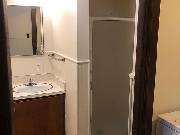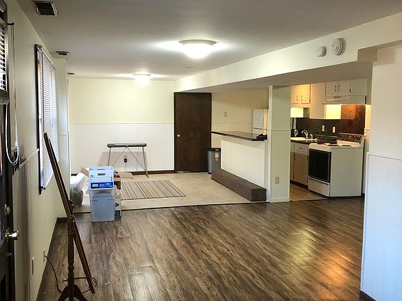 Although there is a space set up bedroom furniture, there is no formal bedroom. This is a basement unit but looks out to a large yard and wooded area. Utilities included, however, the thermostat is controlled by the tannates on upper level. Unit is located on a dead-end street and parking is on the street.