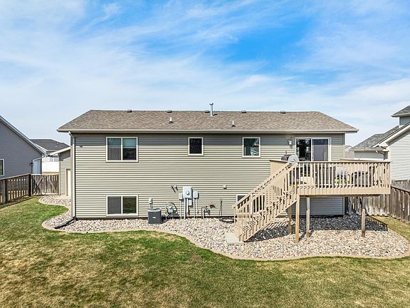 Move in ready split foyer home in Eagles Landing built by Ready Builders in 2012. This well maintained 4-bedroom, 3 bath home is in a great neighborhood on a quiet side street. Beautiful curb appeal leading up to the front door and greeted by the large foyer with a custom-built bench. Up the stairs is the open concept living room, dining room and kitchen. New hard surface flooring throughout the main living area, stainless steel appliances in the kitchen, under cabinet lighting and patio access to the back deck. Down the hall is the main bathroom which has been updated with new flooring and vanity top, the second bedroom is finished with newer carpet, trim and doors. The primary suite is spacious enough for a king size bed and furniture, has a walk-in closet and 3/4 bathroom. The daylight basement is fully finished with a large family room, 3/4 bathroom with a tile shower and heated tile floor, 2 large bedrooms and a private laundry room with cabinet storage. An additional large storage space under the steps. The 3-stall garage is heated, insulated, sheetrock and has a floor drain. You can enter the huge fully fenced back yard through the garage. The yard features concrete curbing, rock, sprinkler system, back deck and a large shed.