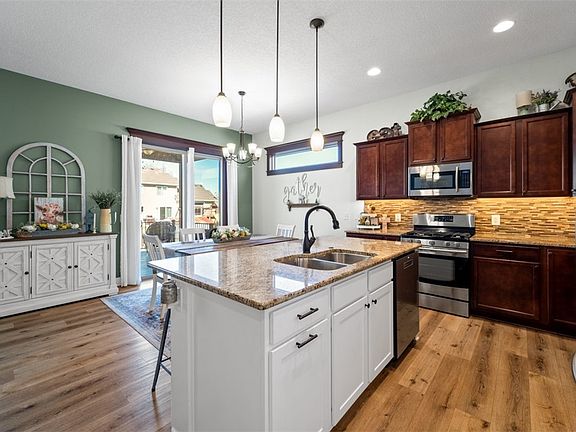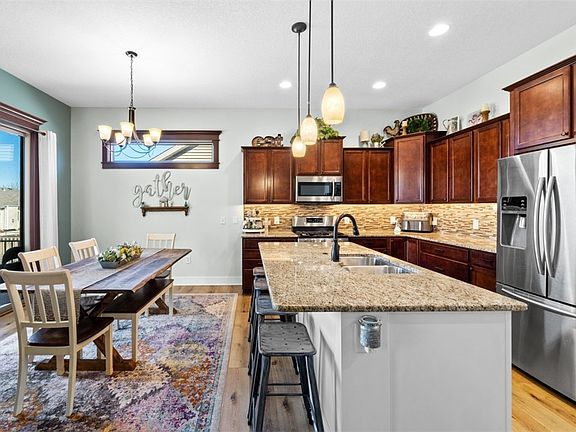 Tucked in an ideal Adel neighborhood near the trails, Evans Park, & Meadow View Elementary, is this 4-bedroom, 3-bath home with more space than meets the eye. Pull into an expansive driveway leading up to the three-car attached garage, perfect for families needing to store toys, a boat, or set up a workbench. Inside, 10 foot ceilings bring light and brightness to the massive great room with a statement fireplace, new LVP flooring, and oversized windows giving views of the backyard. The kitchen is open for entertaining and has a large island with seating, a separate dining space, and stainless appliances. The main floor laundry also includes a mud room space for backpack storage. Three bedrooms and two bathrooms, including a master suite with a large, tiled shower and oversized vanity finish off the first level. Downstairs, enjoy a large family room space, perfect for setting up a home theatre or play area. A 4th bedroom and another full bath are on this level, making a great layout for older children or setting up a mother-in-law suite. The bonus room on this floor also includes more cabinetry and a kitchen-like set-up with a second refrigerator, making it a convenient space for entertaining or hosting holidays. The backyard includes a partially covered deck w/ ceiling fan to enjoy on Iowa evenings with a view of the basketball court, playhouse, and plenty of fenced space for kids or pets to roam. This home is full of amenities, schedule a showing today!